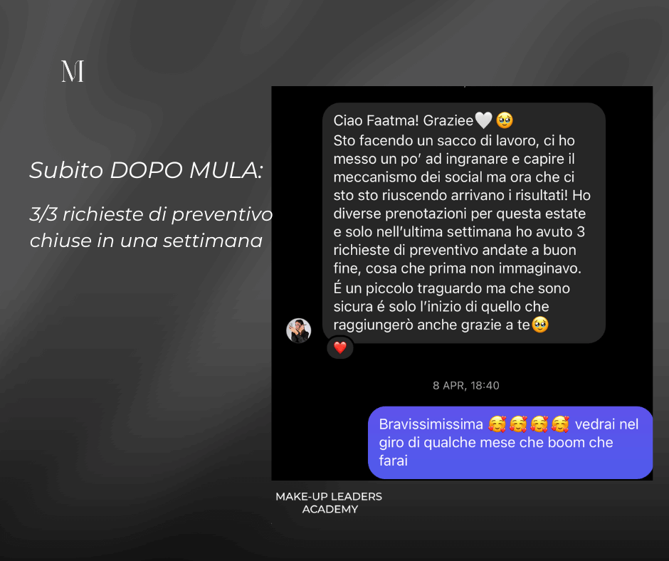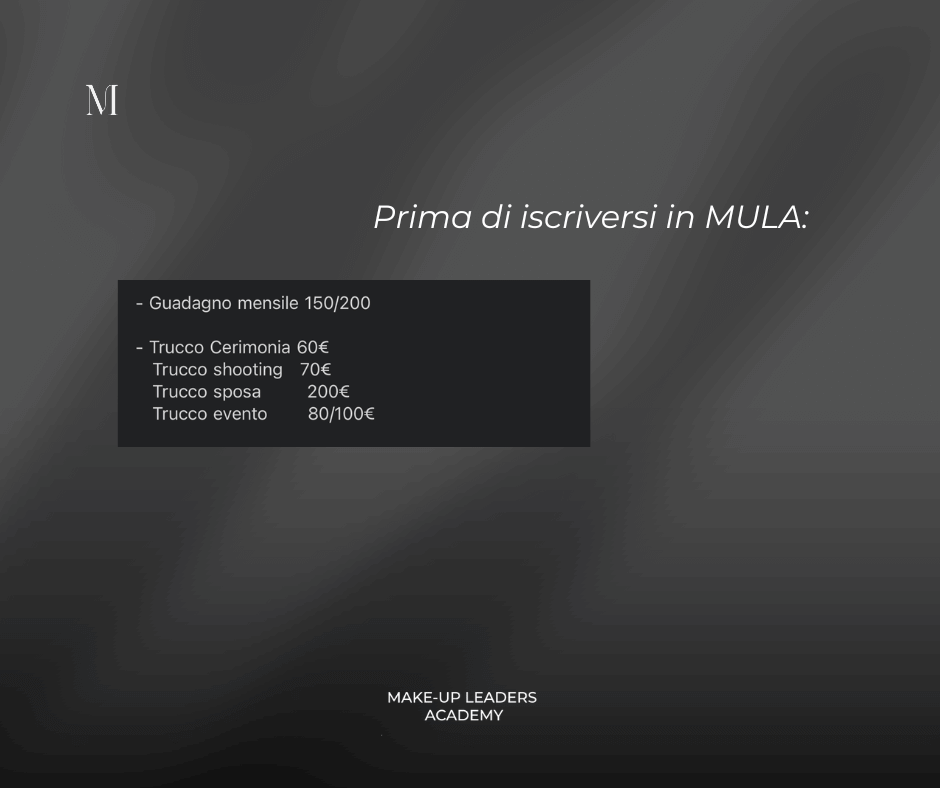 Non aspettare oltre per iniziare il tuo viaggio verso il successo nel mondo del make-up; scegli MULA e trasforma la tua passione in professione.